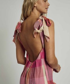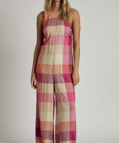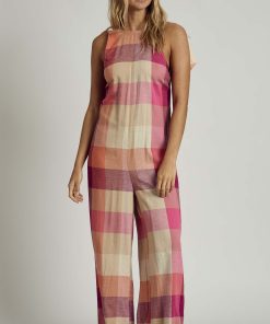 Playful yet effortless, the Native Youth Linen Halter Neck Check Jumpsuit is a summer staple. Crafted from breathable linen in a vibrant pink multi-check pattern, this jumpsuit features a flattering halter neckline and a relaxed wide-leg fit for ultimate comfort.