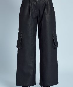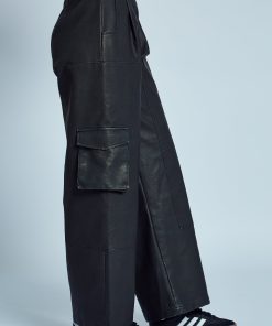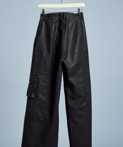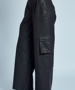 These Almos Wide Leg Trousers in black offer an effortlessly cool silhouette in a sustainable vegan leather. The washed effect adds a hint of vintage style, while the wide leg cut ensures a relaxed yet polished look. Perfect for pairing with fitted tops or oversized knits, these trousers bring a versatile edge to your wardrobe.