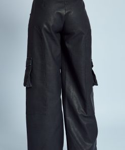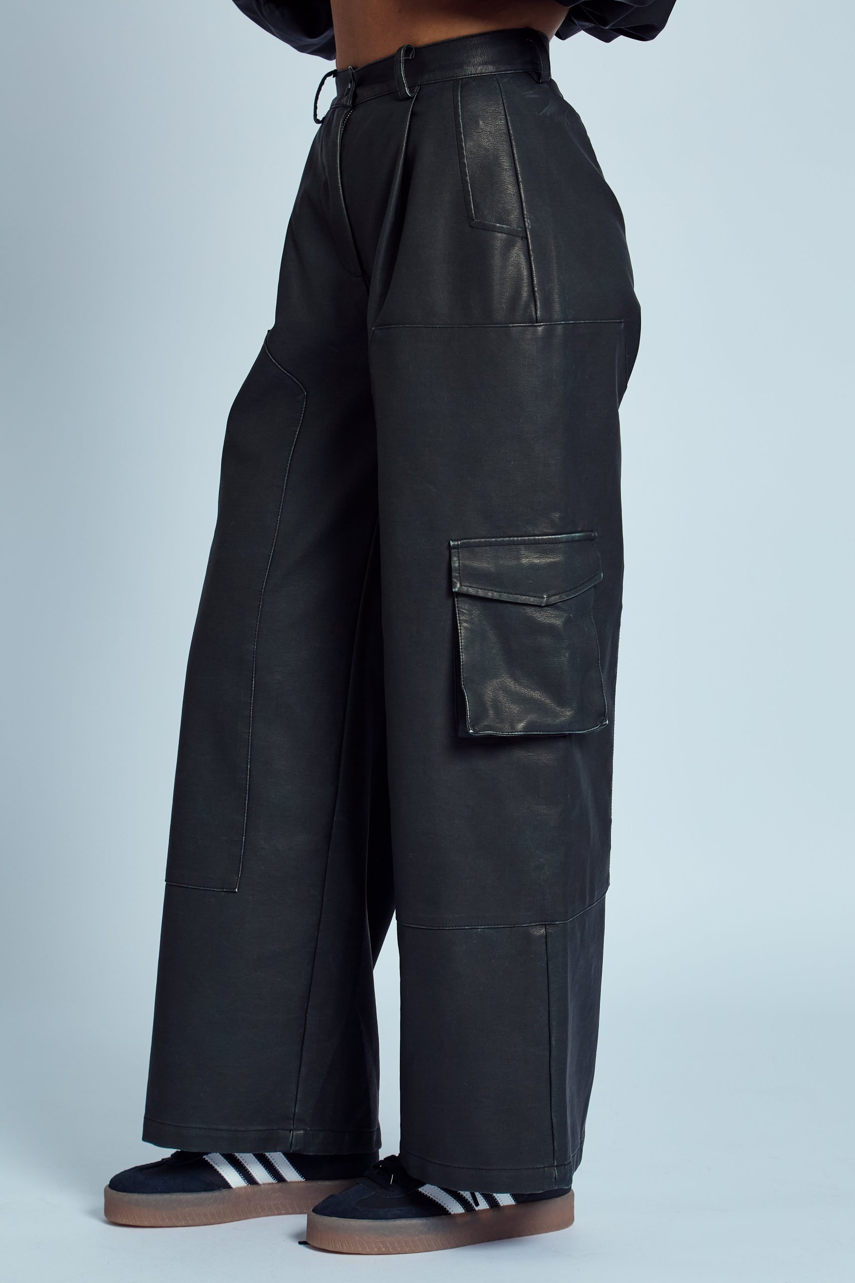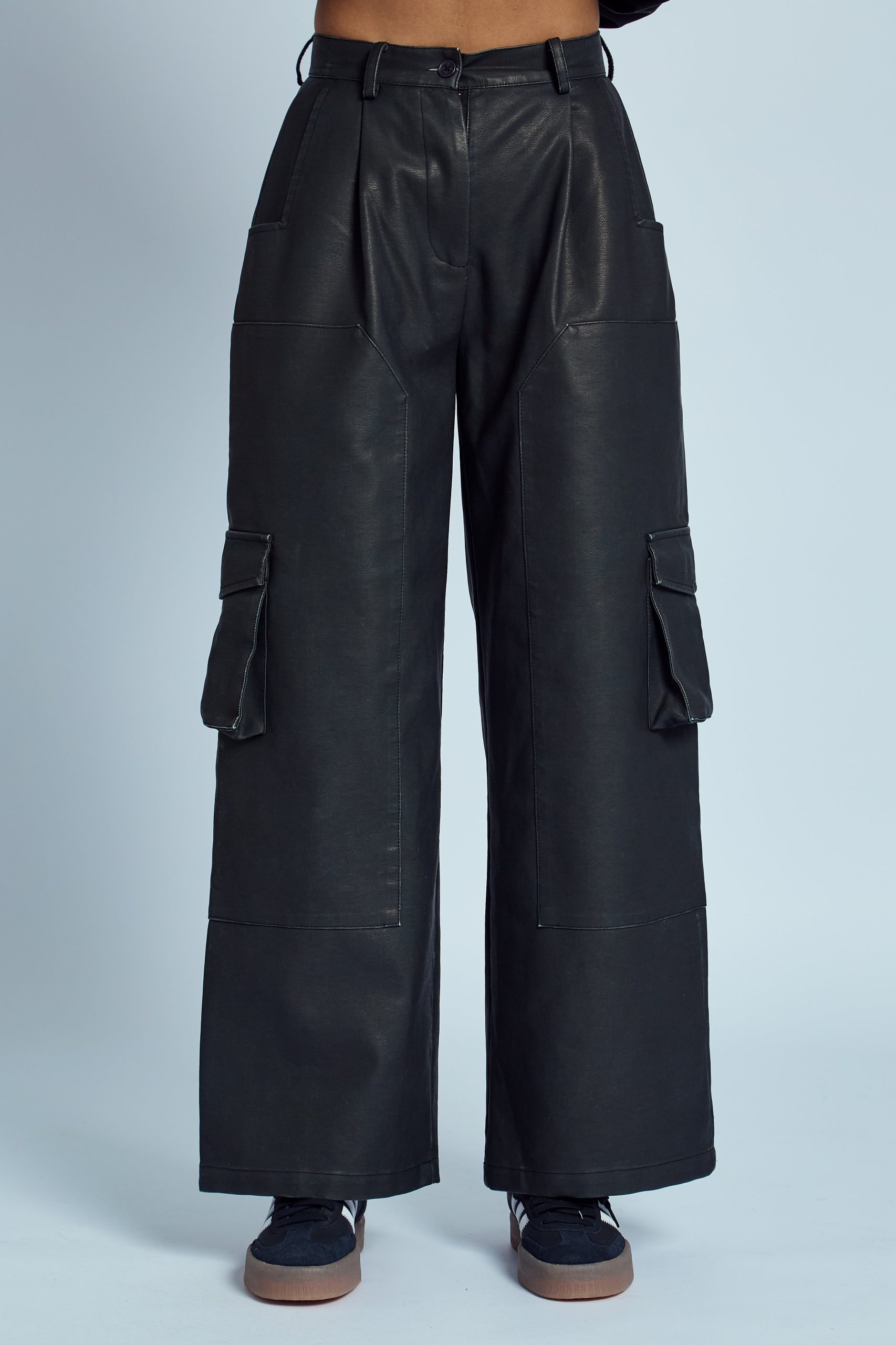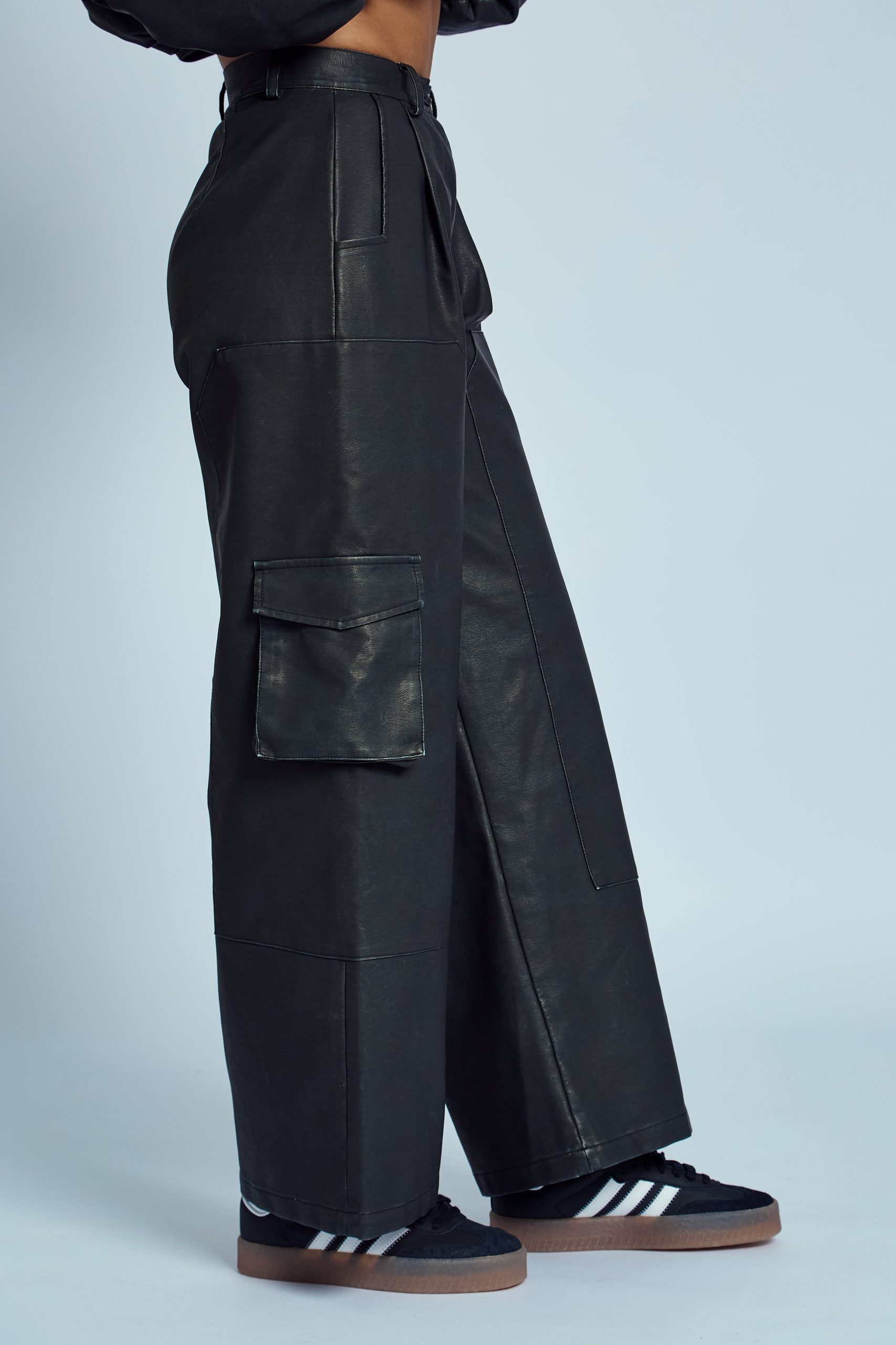 ALMOS WASHED EFFECT VEGAN LEATHER WIDE LEG TROUSER