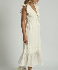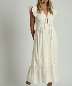 Light and effortlessly romantic, the Native Youth Ruffle Midaxi Dress is a dreamy addition to your wardrobe. Crafted from breathable cotton, this floaty midi dress features delicate broderie inserts and soft ruffle detailing for an elegant yet relaxed feel. The tie-front detail adds a subtle, feminine touch, making it perfect for warm-weather dressing.