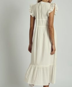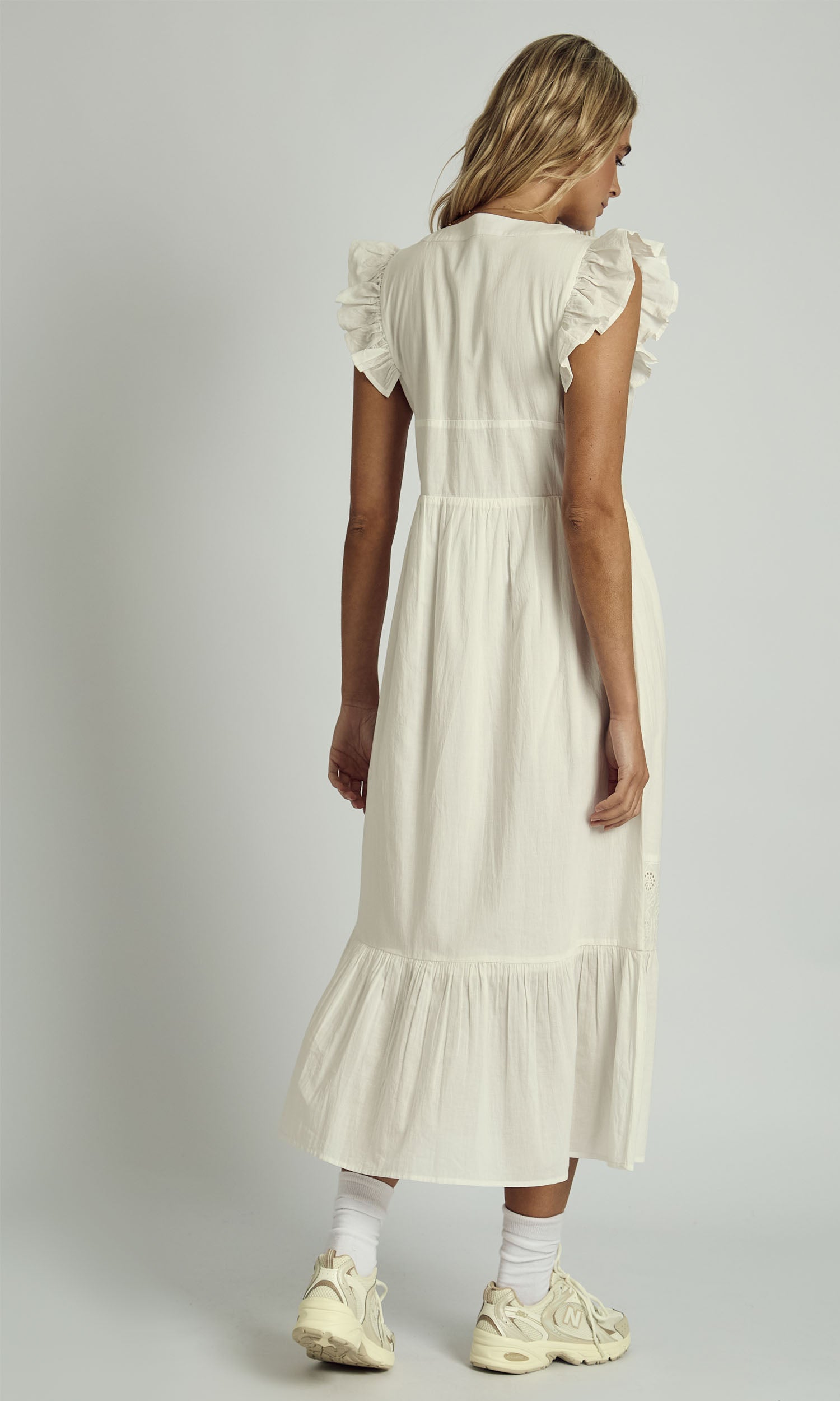 AVERIE RUFFLE MIDAXI FLOATY MIDI DRESS IN WHITE