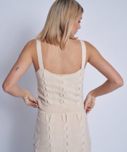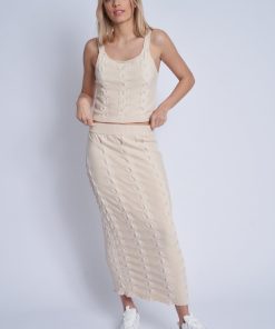 This chunky knit cami top provides extreme comfort. Coming in a neutral stone colourway and featuring a finely woven cable knit pattern throughout. This is definitely a key addition to any spring summer wardrobe.