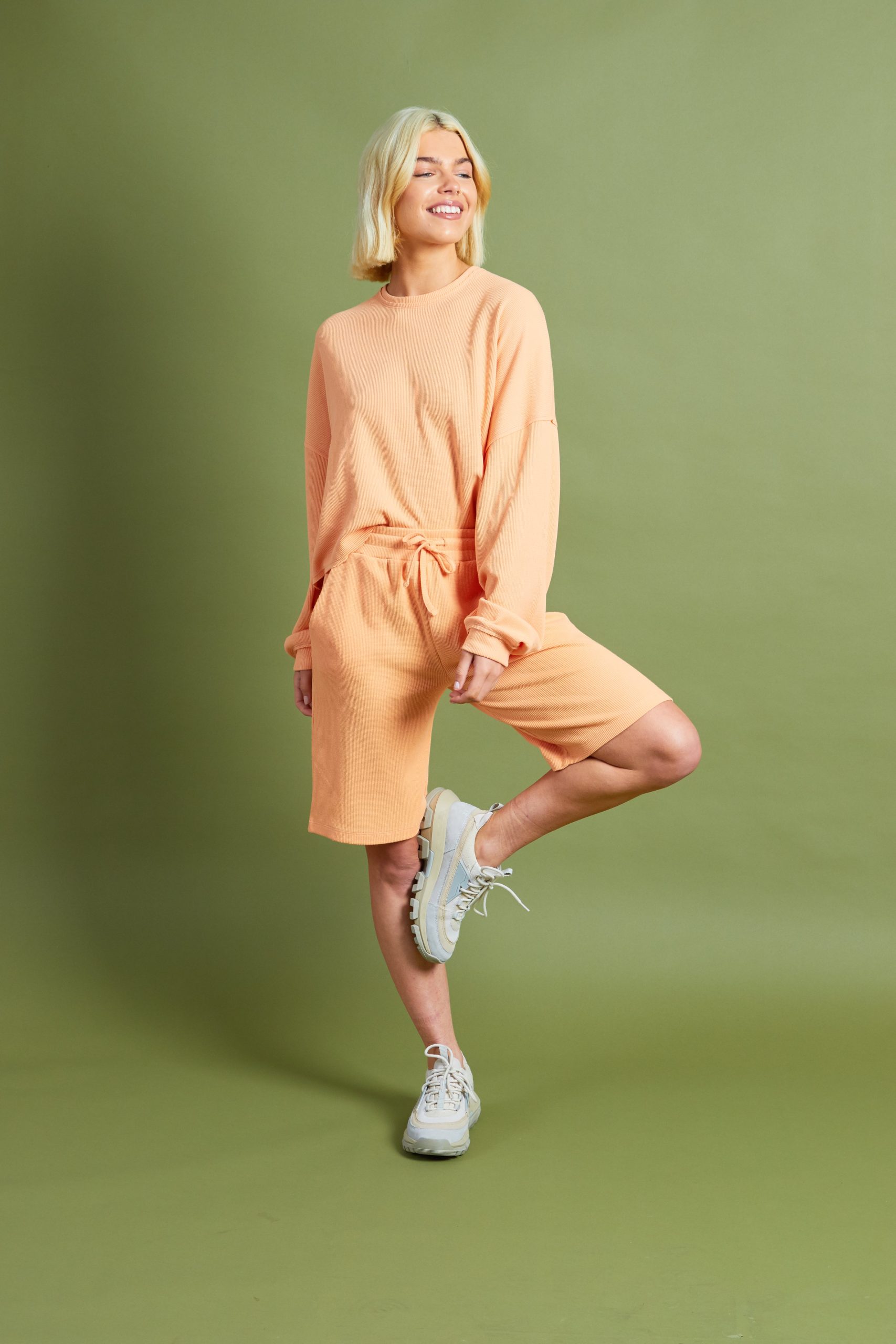 Introducing the Brielle shorts, crafted from a cotton blend and cut for a relaxed fit. They have two classic welt pockets, an elasticated waistband with a self-tie function and finished with a raw cut hem.