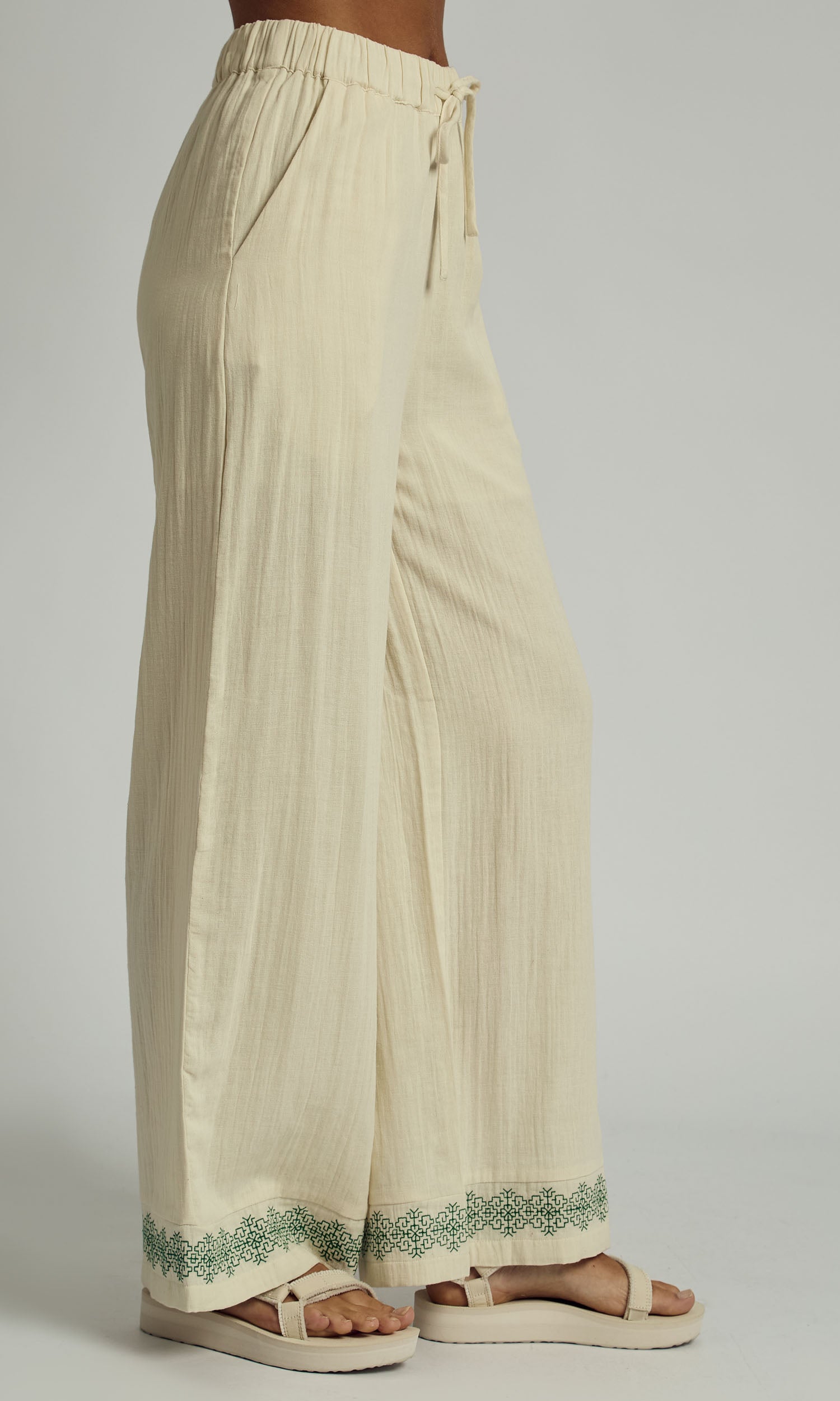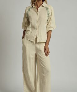 CAMRYN DOUBLE GAUZE EMBROIDERED WIDE LEG TROUSER