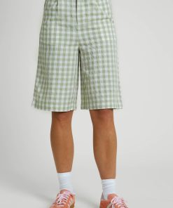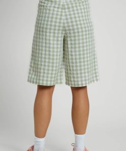 Introducing the Cardomon short, a textured city-style short in an all-over sage green gingham print. Pair it with the matching blouse and bucket hat for a summer-suited look.