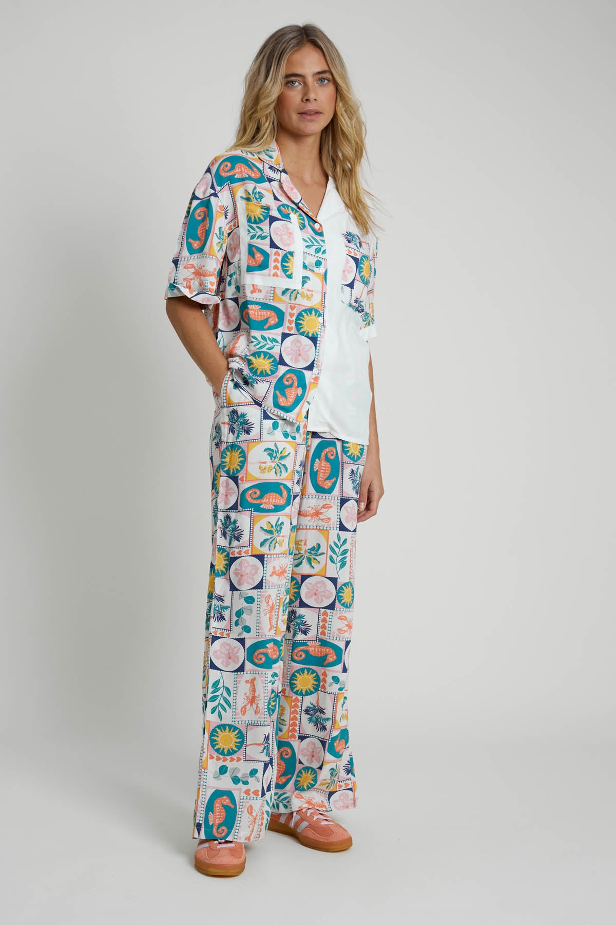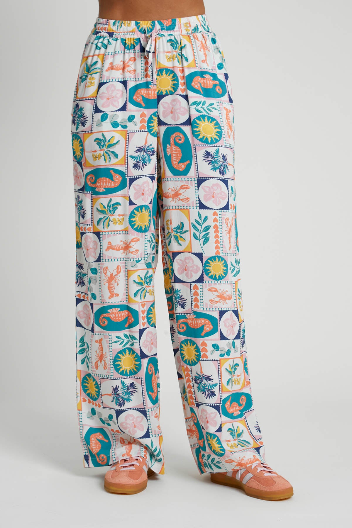 FARRAGO POSTCARD PRINTED ECOVERO VISCOSE WIDE LEG TROUSERS