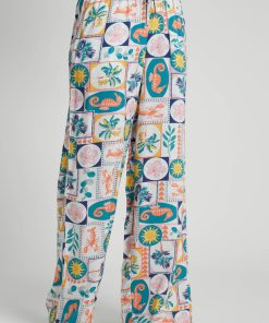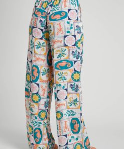 The multi-coloured postcard print on these trousers makes a bold statement. Crafted from sustainable Ecovero viscose, they offer a relaxed, wide-leg fit that’s both stylish and eco-conscious.