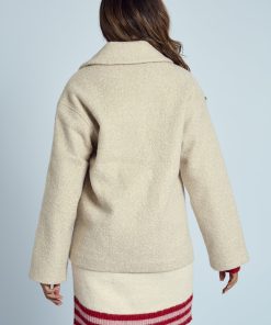 This boucle cropped coat in a sophisticated beige hue features a double-breasted design with a modern cropped silhouette. The boucle texture gives it a cozy, textured feel, while the classic button detailing adds a timeless touch. Perfect for layering over seasonal essentials, this coat combines chic style with everyday functionality.