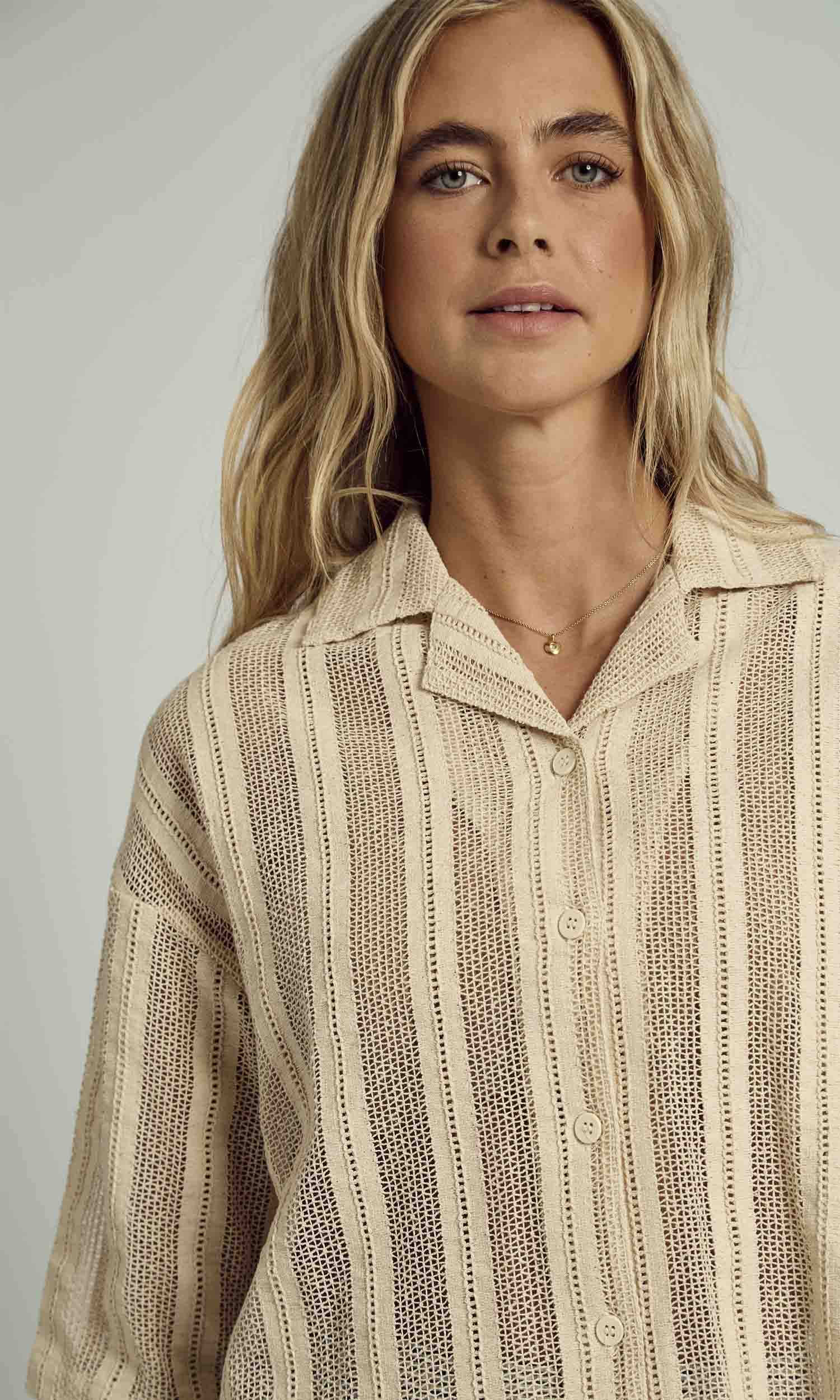 Embrace effortless style with the Native Youth Crochet Cropped Shirt. Crafted from intricate crochet fabric, this shirt offers a breathable and lightweight feel, perfect for layering or wearing on its own. Designed with a relaxed fit and cropped silhouette, it adds a contemporary touch to any outfit. Pair it with high-waisted jeans for a chic and versatile look.
