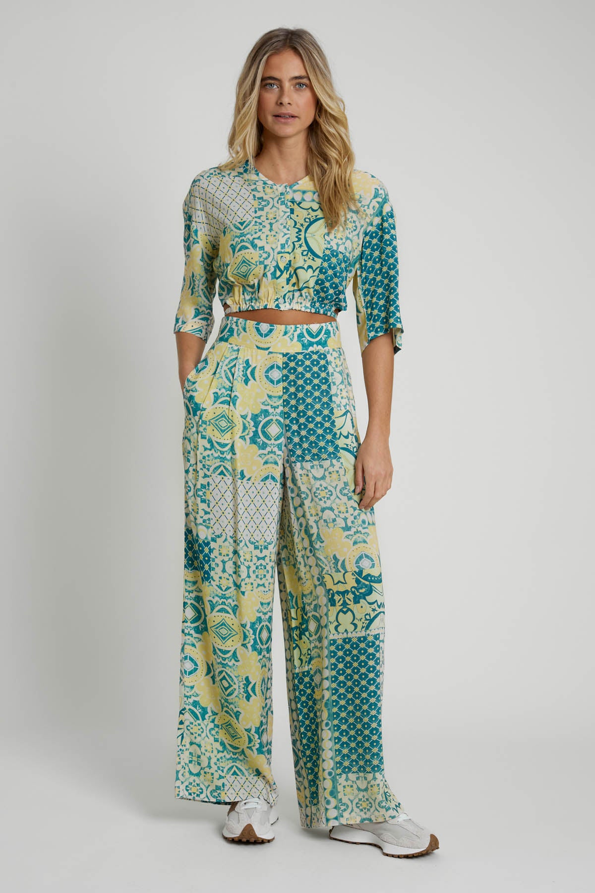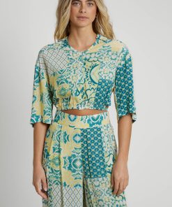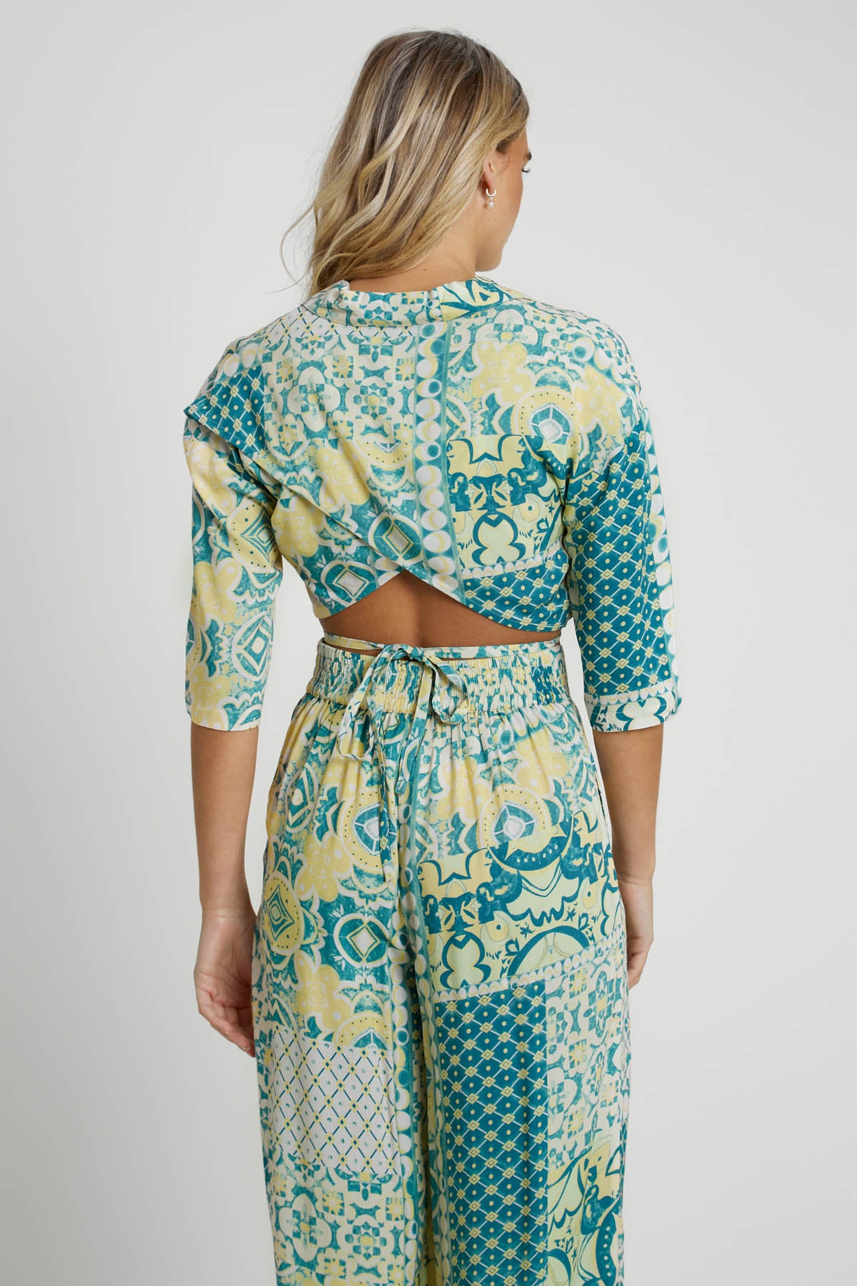 LAVERA TILE PRINTED ECOVERO VISCOSE CROPPED SHIRT