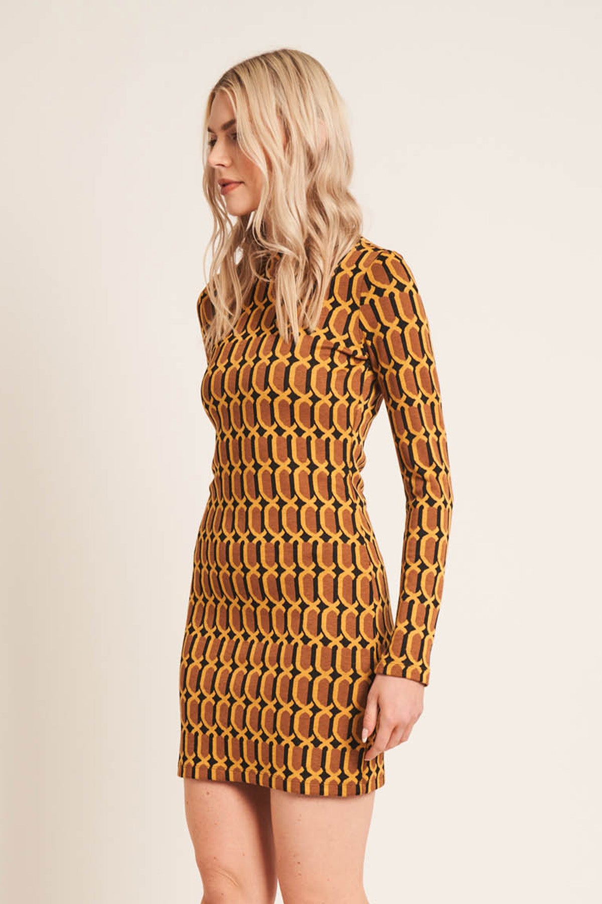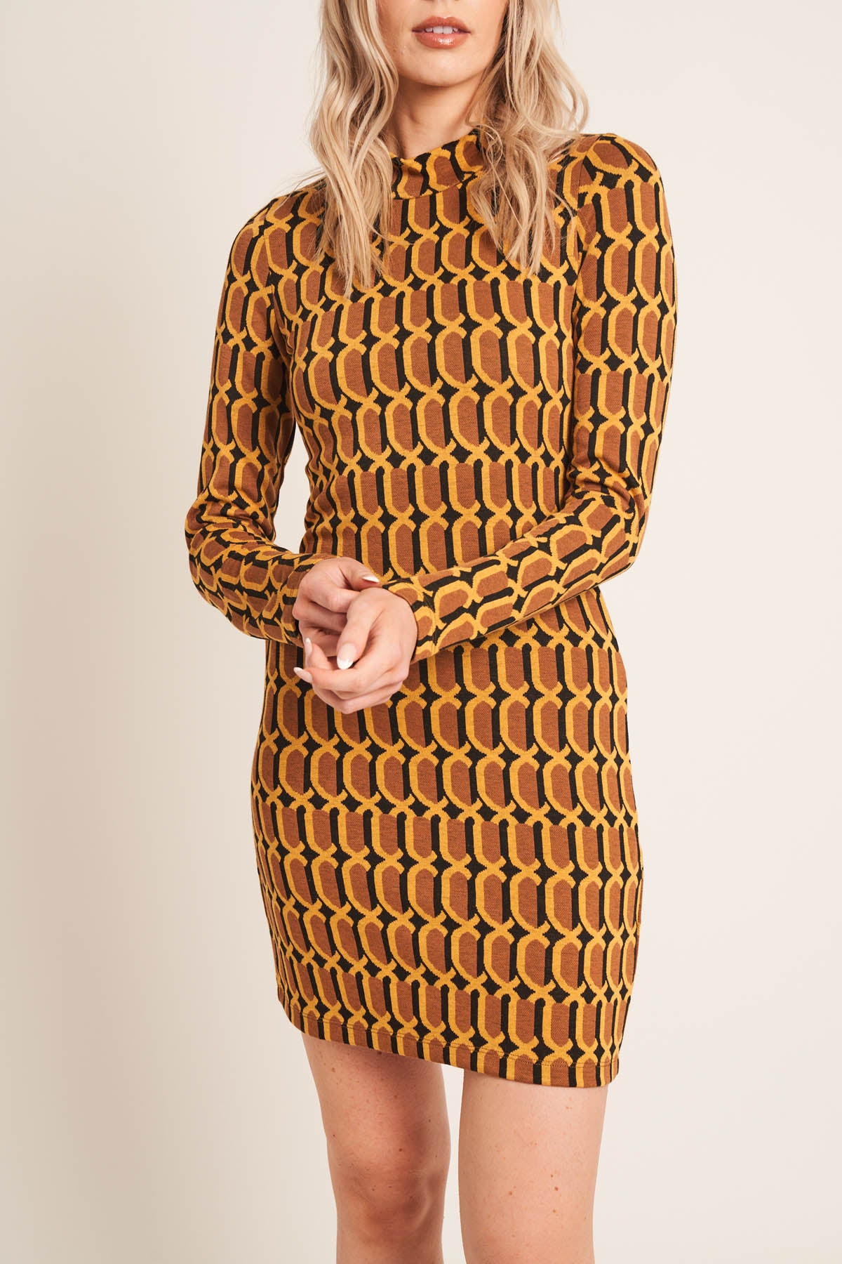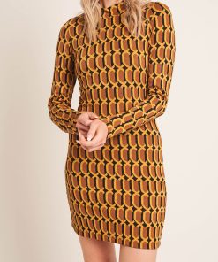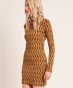 The Loren dress is crafted from vintage inspired jacquard jersey cut at a mini dress length feeaturing long sleeve and high neck.
