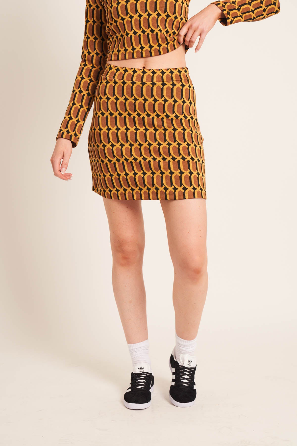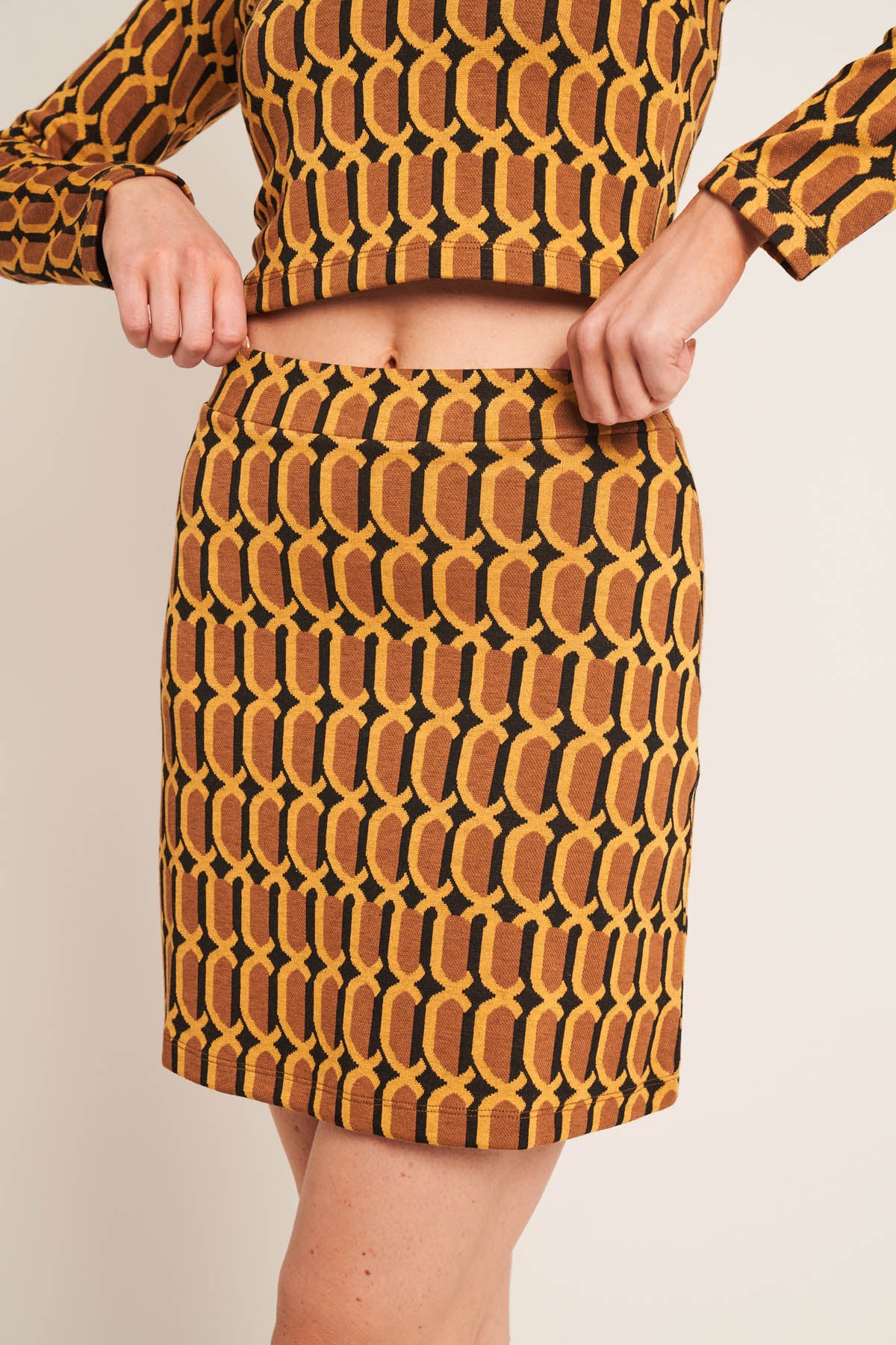 The Loren A line mini skirt is crafted from vintage inspired jacquard jersey.