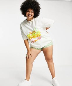 Introducing the Lovia, an oversized t-shirt in an off-white with big smiles only text and floral graphic print