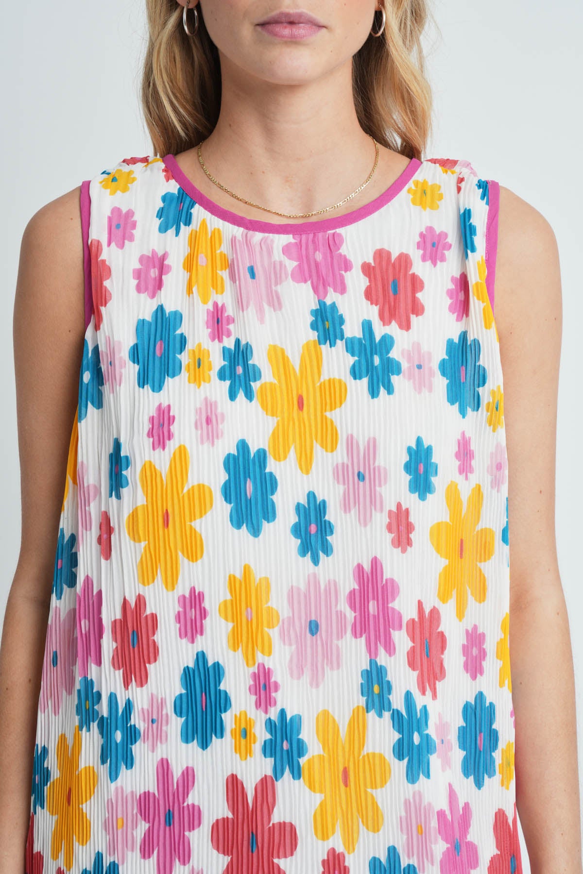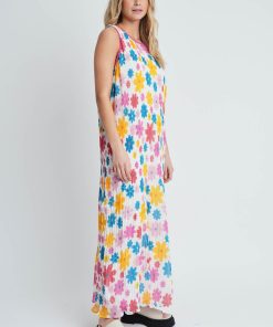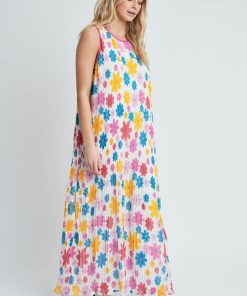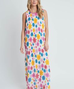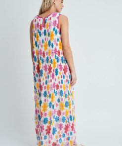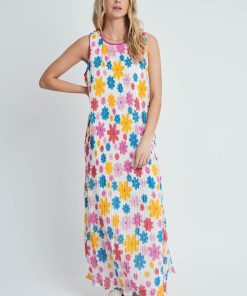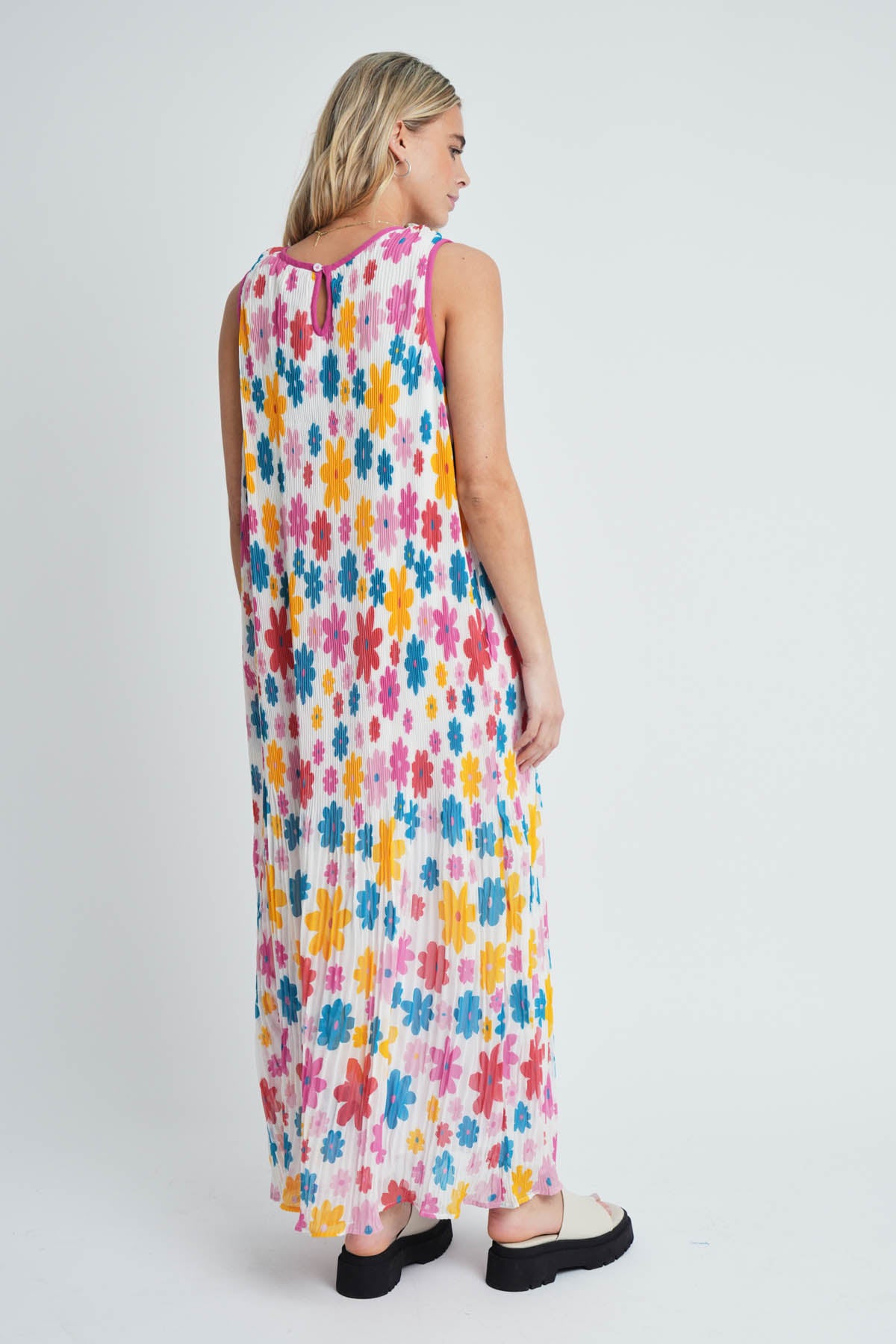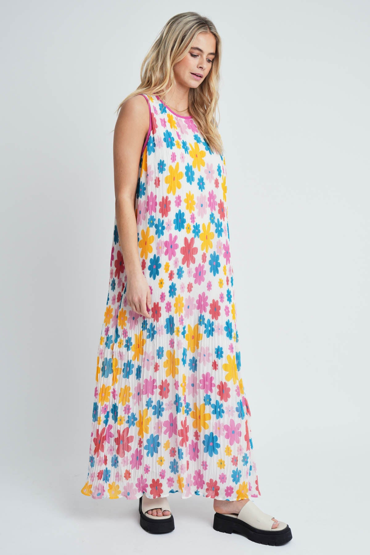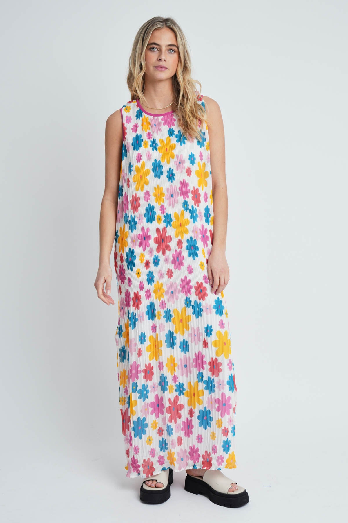 The Marianne swing dress is cut to a relaxed fit in a maxi length boasting a fun vintage inspired floral print on trending plisse fabric.