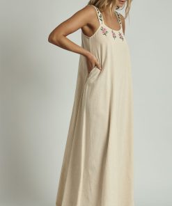 Timeless and effortlessly chic, the Native Youth Embroidered Edge Linen Maxi Dress is a warm-weather essential. Crafted from breathable linen in a soft stone hue, this maxi dress features delicate embroidered edging for a refined yet relaxed feel. Its flowing silhouette offers ease of movement, making it perfect for both casual days and elevated occasions.