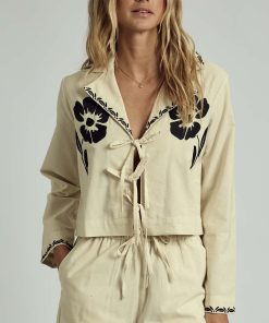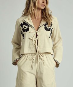 OPAL EMBROIDERED TIE DETAIL SHIRT CO-ORD IN STONE