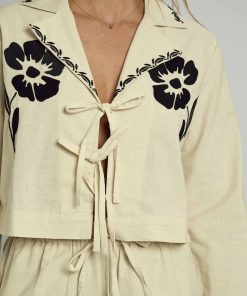 A breezy blend of effortless style and intricate detailing, the Native Youth Embroidered Tie Detail Shirt is a versatile co-ord staple. Crafted from lightweight linen, this relaxed-fit shirt features delicate embroidery and tie details for a contemporary twist. Designed for easy styling, pair it with matching linen trousers or mix and match with your favoUrite denim for a laid-back, elevated look. Perfect for warm days and cool evenings alike.
