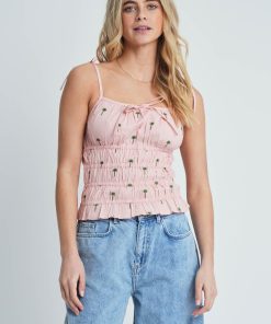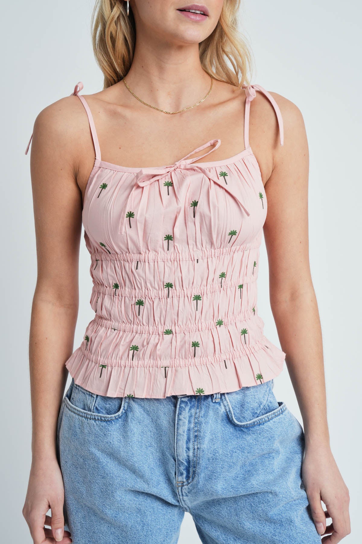Introducing the Rero top, crafted from 100% cotton, characterised with palm tree embroidery throughout. Framed by a square neckline, it has a cropped length and a straight hemline.
