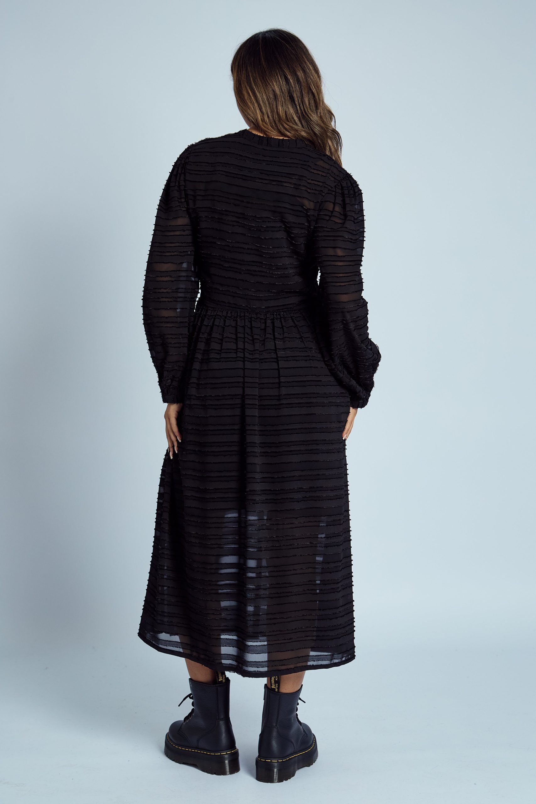 SAMIRA BRUSHED STRIPE SMOCK MAXI DRESS