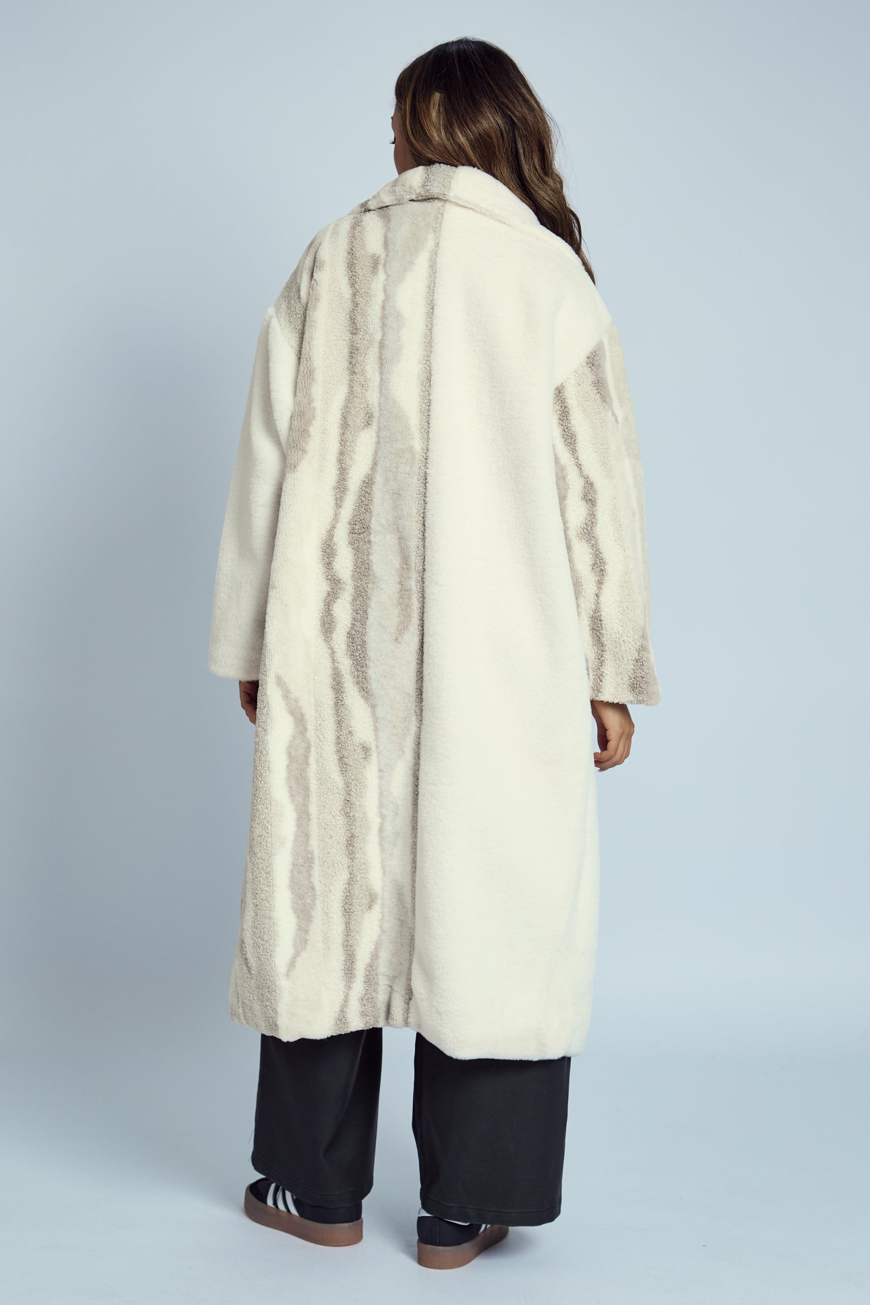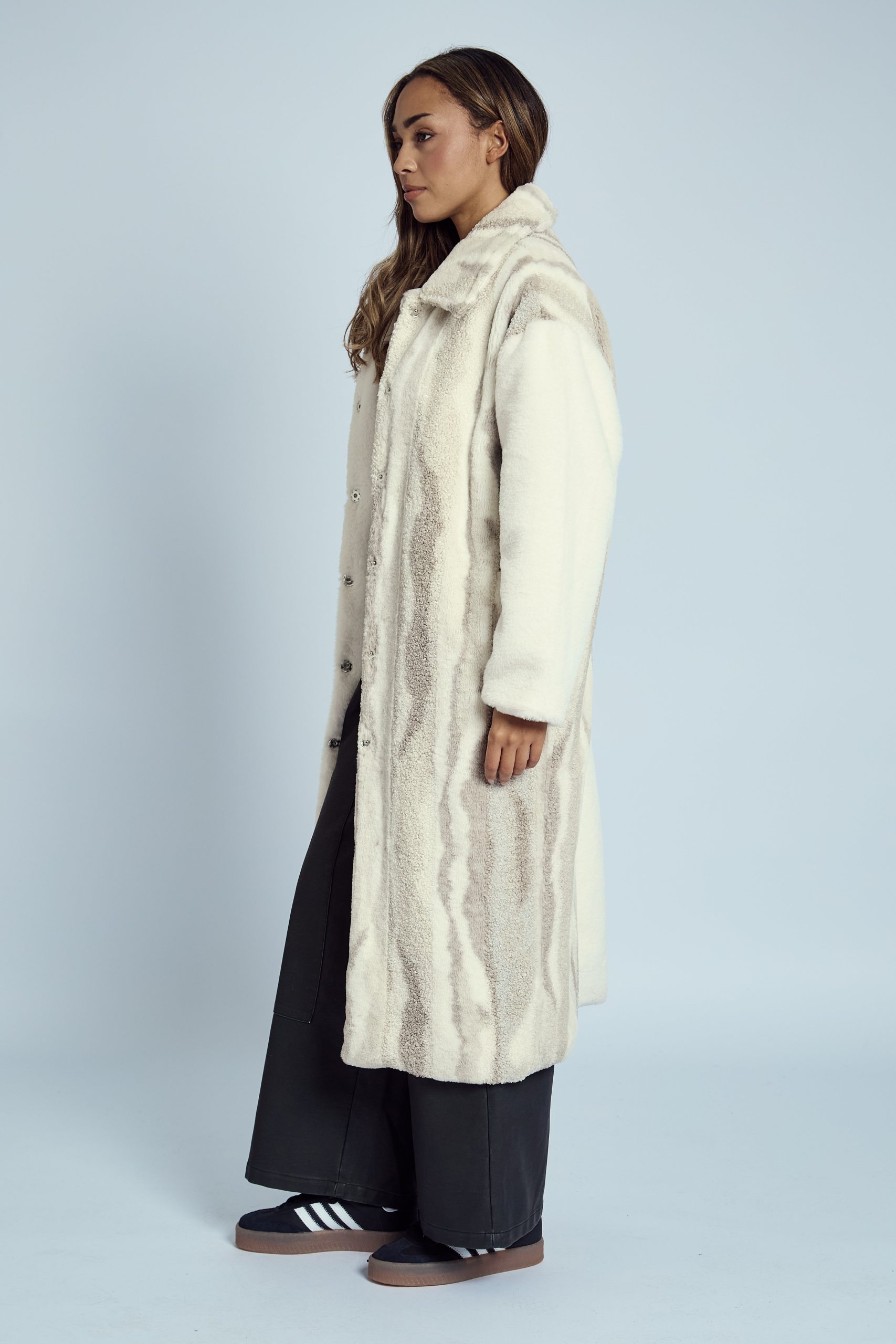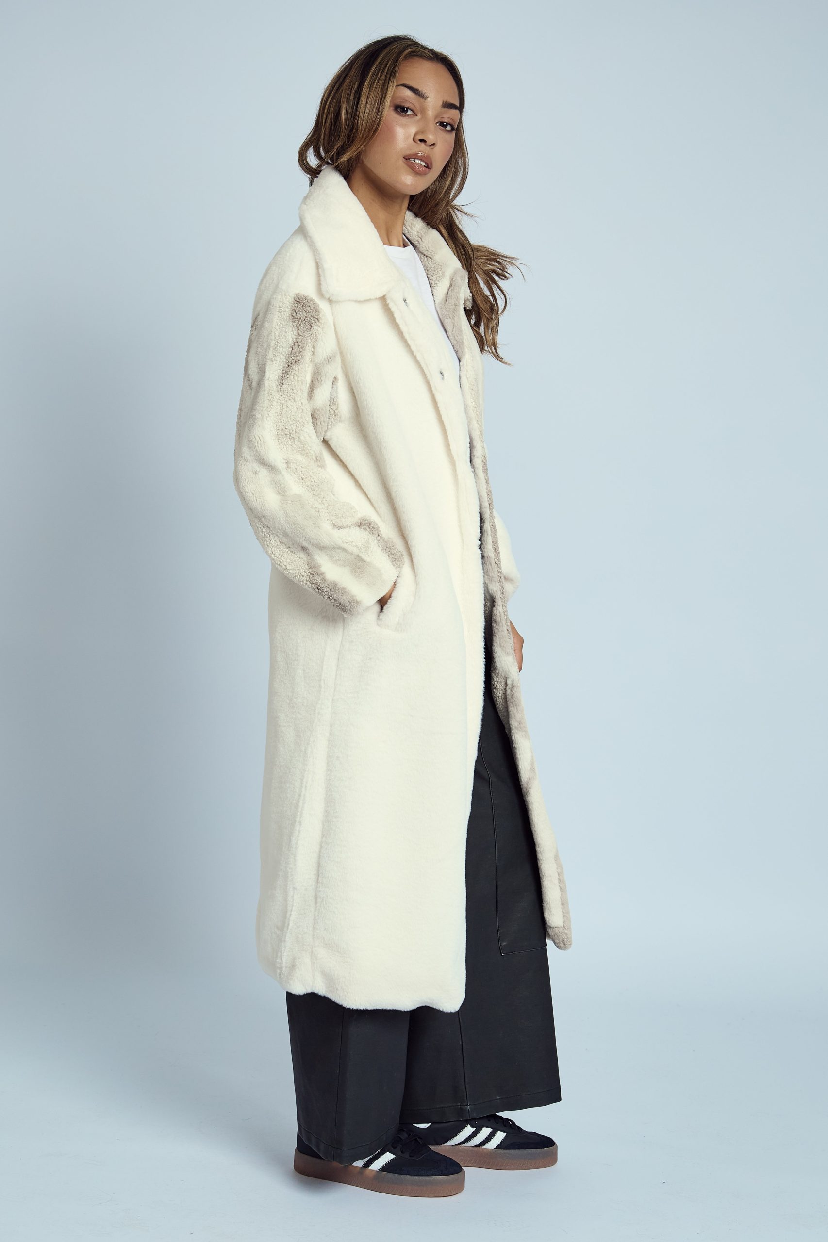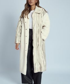 Introducing the Tetia Longline Coat, a masterpiece of warmth and style with its mixed Sherpa and faux fur design. This calf-length stunner features a concealed snap button fastening to the front, ensuring a sleek and elegant appearance. With long sleeves and a classic collar, it’s the perfect blend of fashion and comfort, ready to elevate your winter wardrobe.