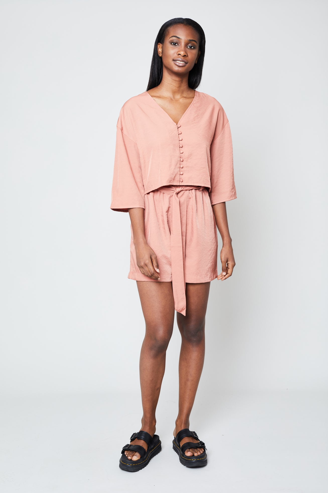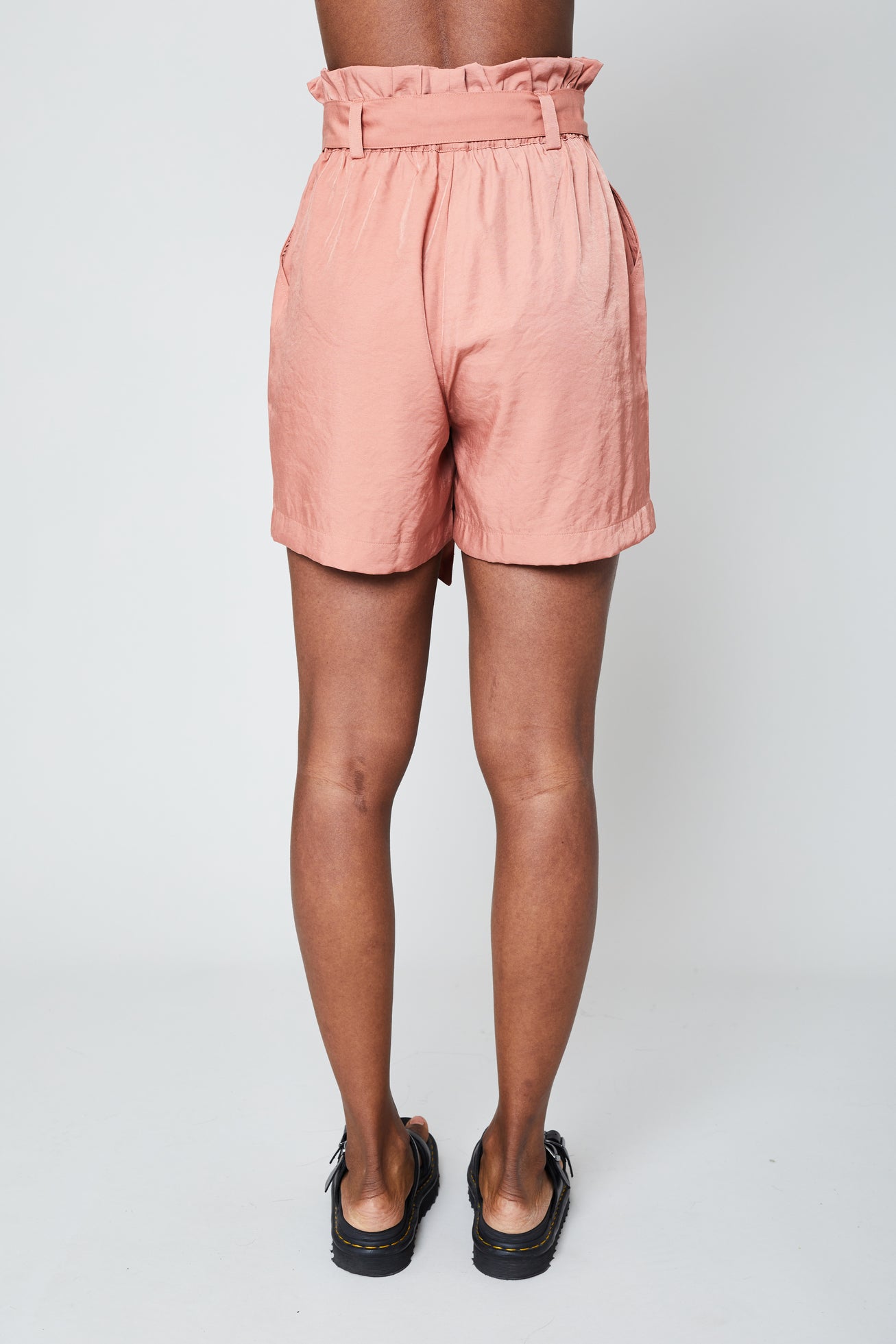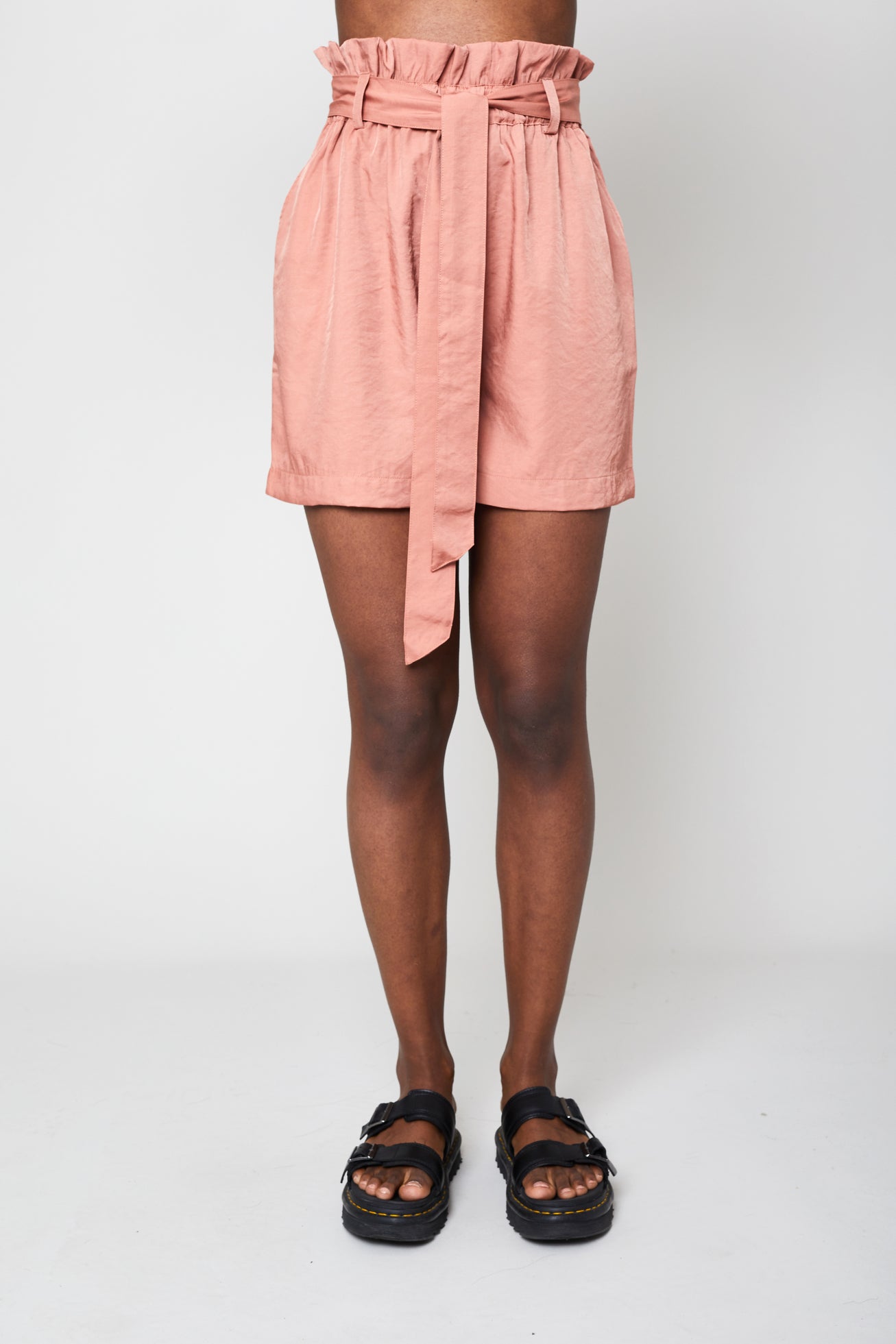 Introducing the Emily Short, cut from a luxe peach fabric. The high waisted short is designed with an elasticated paperbag waist. The short is finished with a tie waist and side pockets. The Emily Short will become your holiday essential.