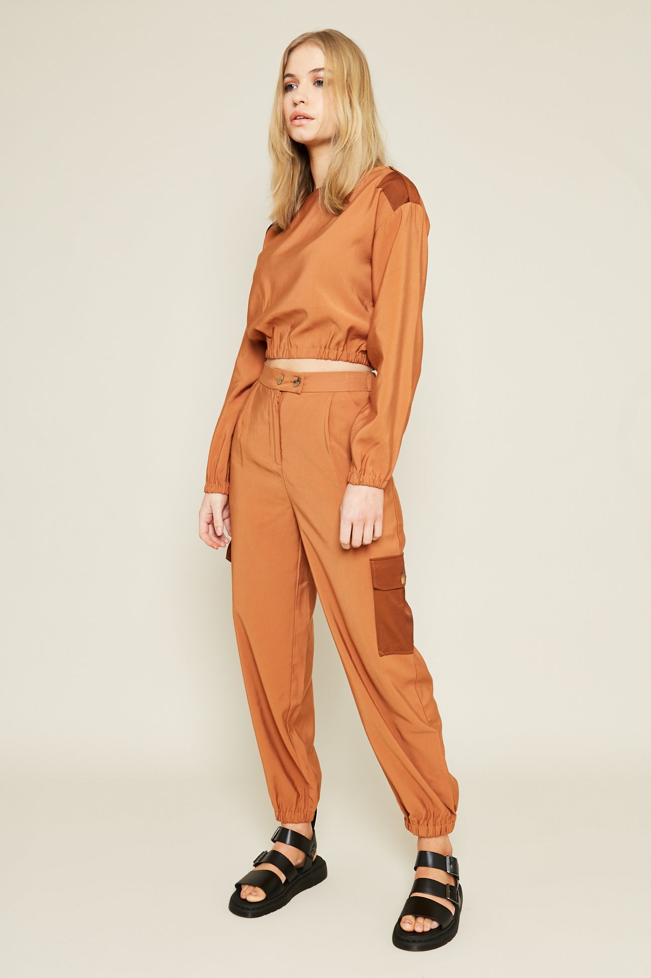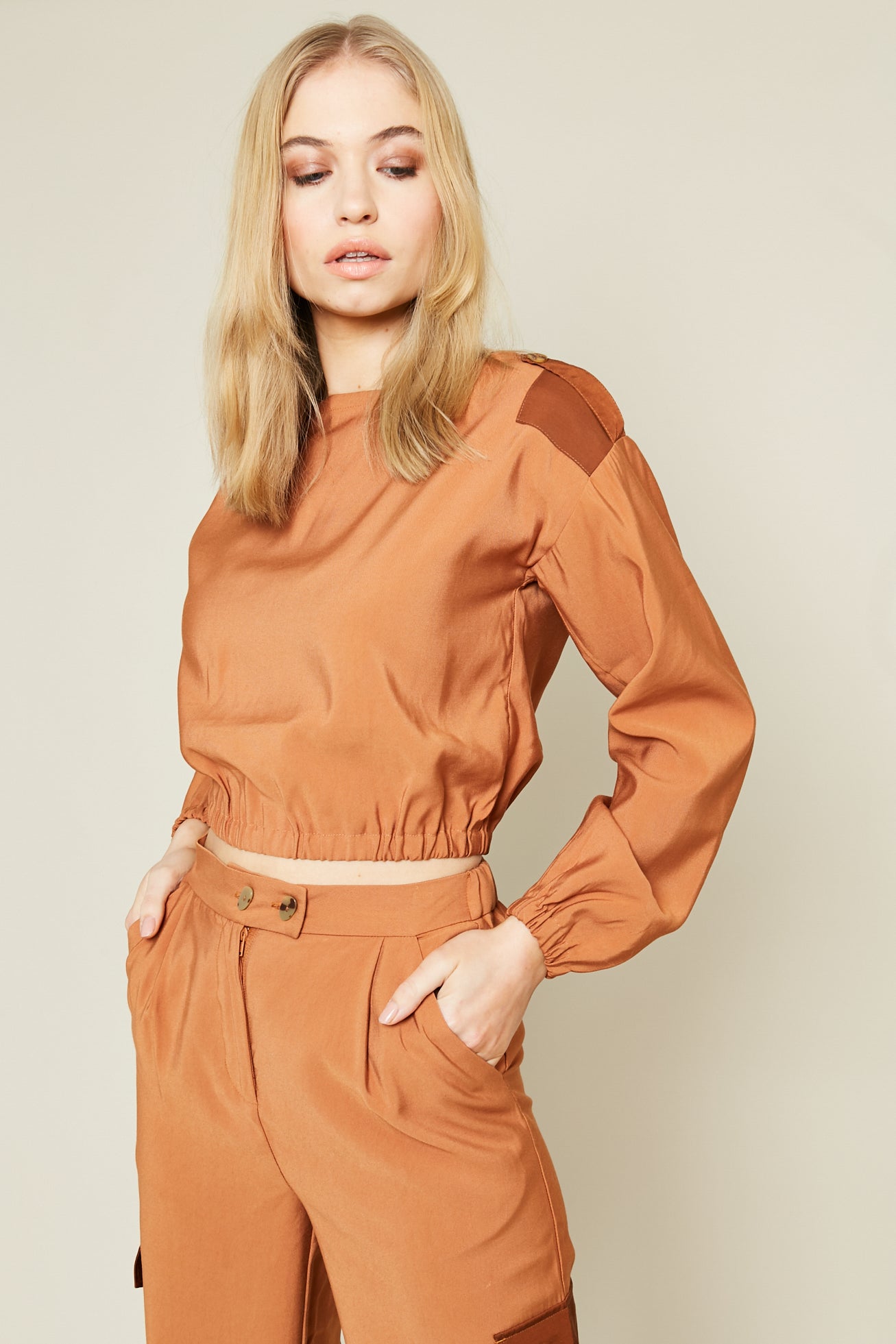 Introducing the Phelps Top, caramel in colour and cropped to perfection. The Phelps mixes utility and chic trends to create a new look this summer. Shoulder button tabs add that little extra detail giving a modern feel to the classic crop.