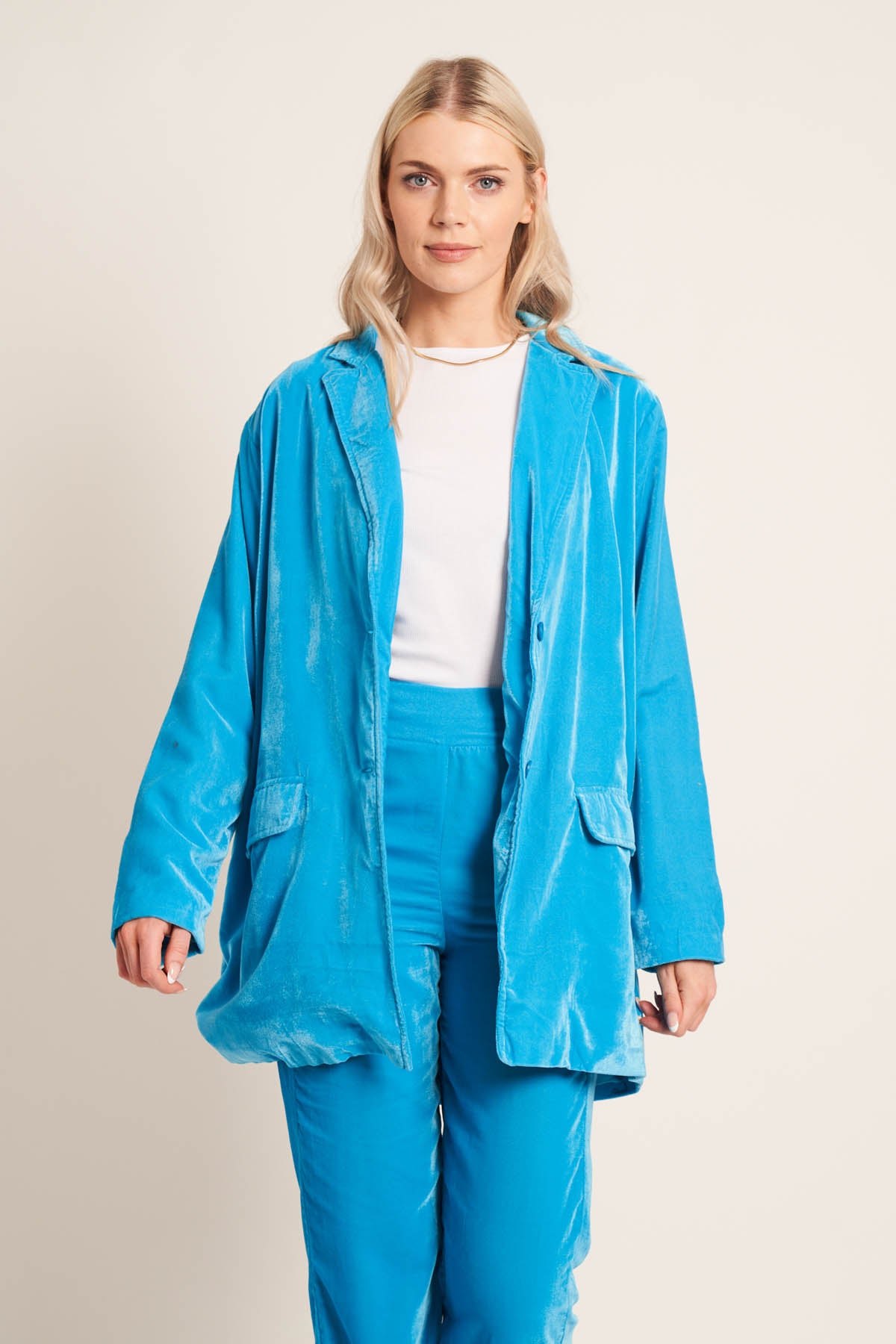 The Tove blazer jacket is crafted in soft touch velour and fit for a relaxed fit