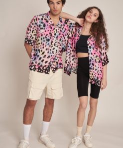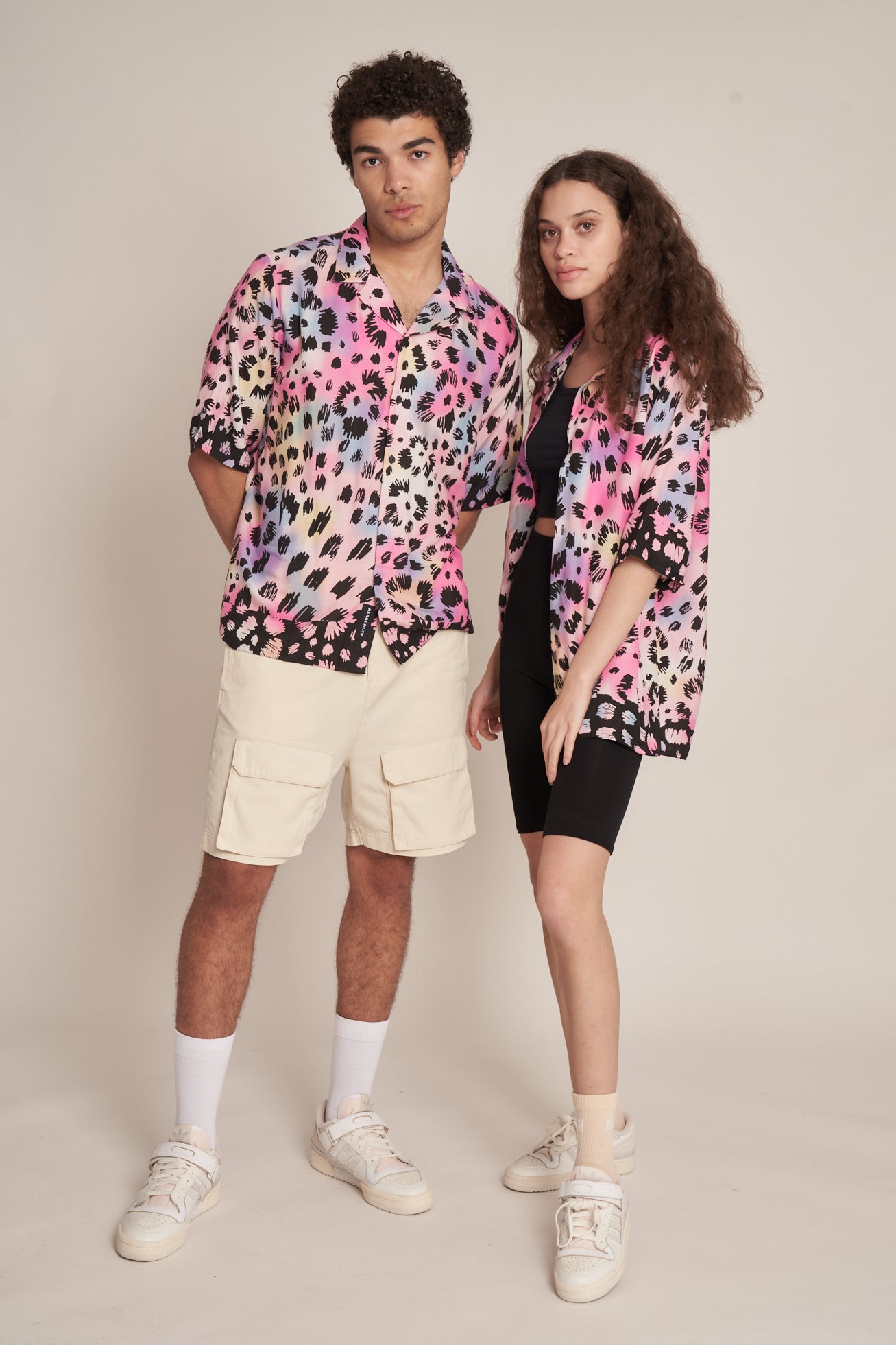 Introducing the Dilani Shirt. Our classic revere collar silhouette, constructed from soft and cool cotton mix materials in an all-over leopard print design.