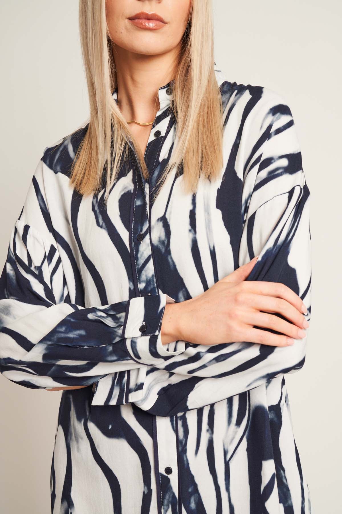 Introducing the Wavelet, a printed long sleeve shirt dress, cut with a loose fit in our signature print. Crafted from sustainable LENZING™ ECOVERO™ fabric, it features long sleeves, front button fastening and a straight hem.