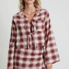 WIVI JERSEY GINGHAM JACQUARD SHIRT WITH SCALLOP HEM DETAIL