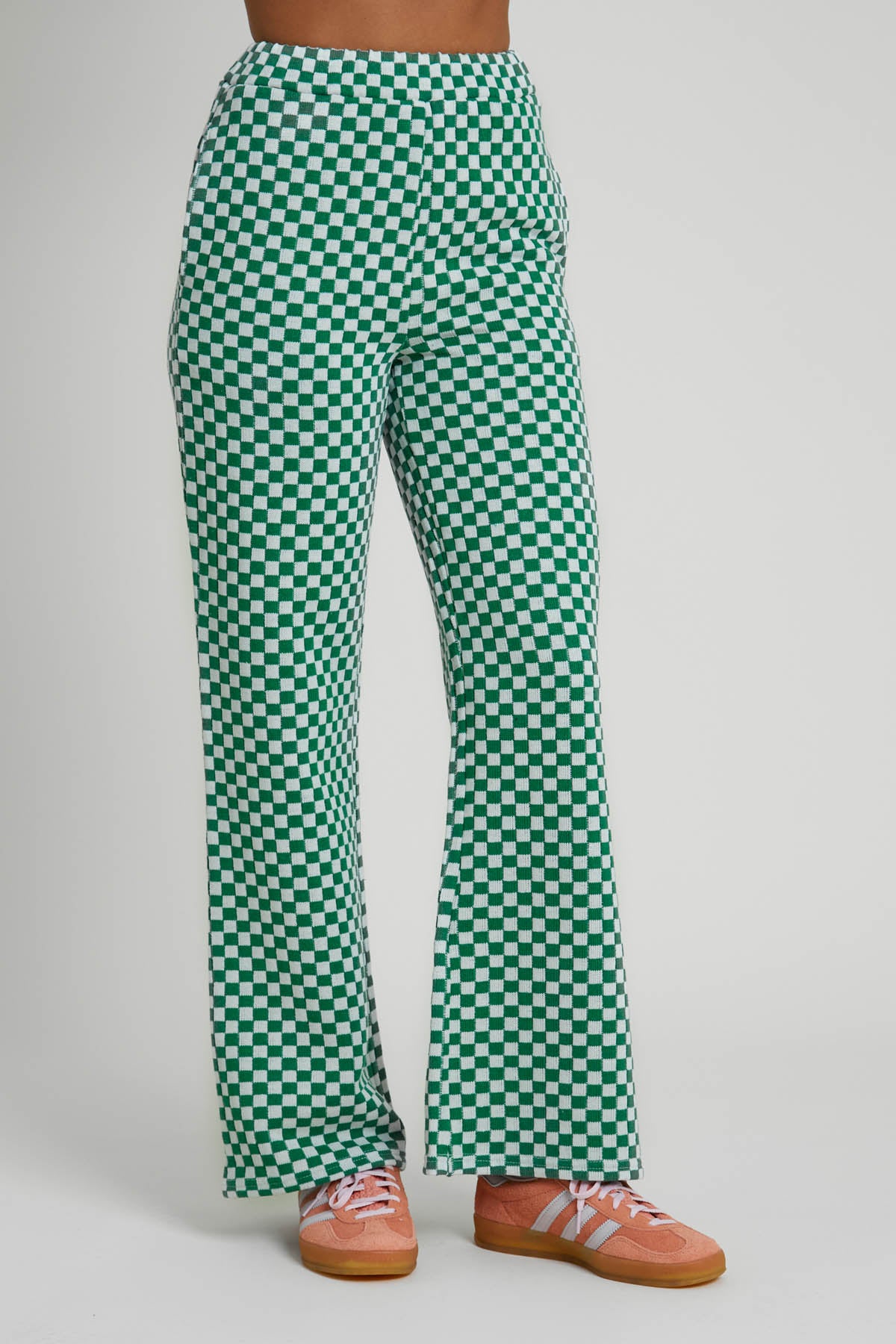 WIVI JERSEY GINGHAM JACQUARD WIDE LEG TROUSERS